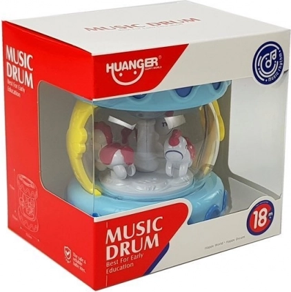La giostrina colorata con cavallini all'interno del tamburo cattura l'attenzione dei bambini e arricchisce l'esperienza di gioco.