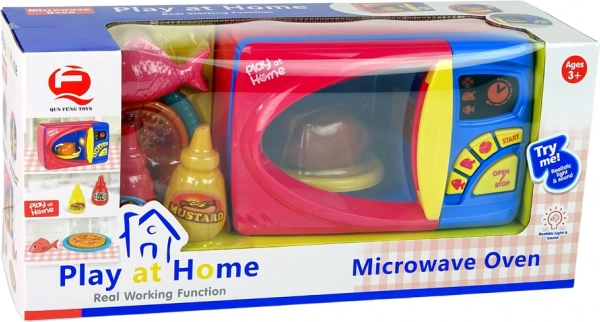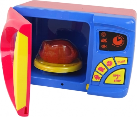 Il set include giocattoli di plastica come pesce, pollo arrosto, pizza e bottiglie di ketchup e senape. Dopo aver rimosso la sicura dal retro del giocattolo e selezionato il programma, la luce interna si accende e il piatto con il cibo inizia a ruotare, simile all'uso reale di un forno a microonde.