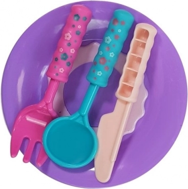- Dotazione completa – piatti, posate, coni, ciotoline e formine con “dolcetti”.