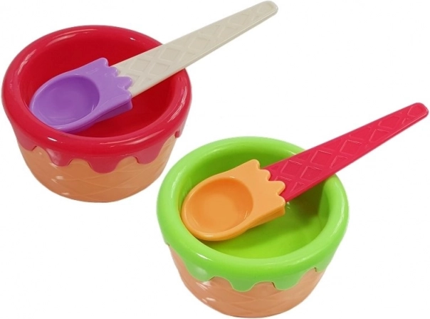 Coni colorati, ciotoline e paletta permettono di mescolare gusti e creare combinazioni di gelato secondo la fantasia.