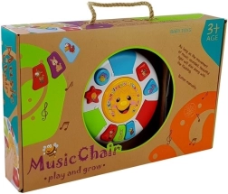 Il grande sole centrale riproduce risate e percussioni, mentre il mini pianolino con animaletti stimola a scoprire la musica.