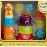 La piramide contiene blocchi di varie forme che possono essere inseriti perfettamente nelle relative tazze. Sono raffigurati animali come gattini, giraffe e coniglietti, che stimolano la loro creatività e divertimento durante il classificazione.