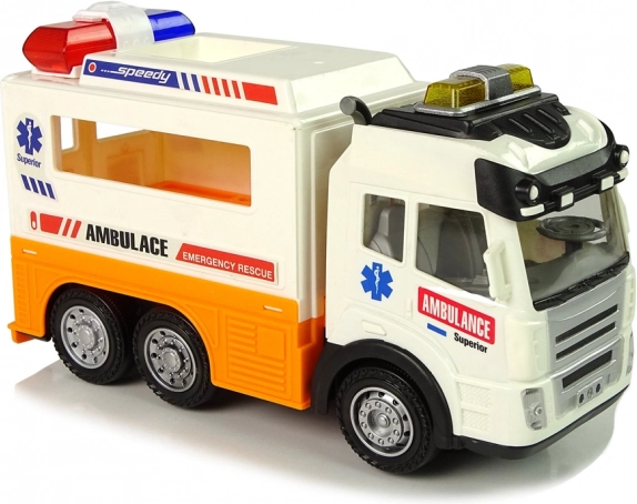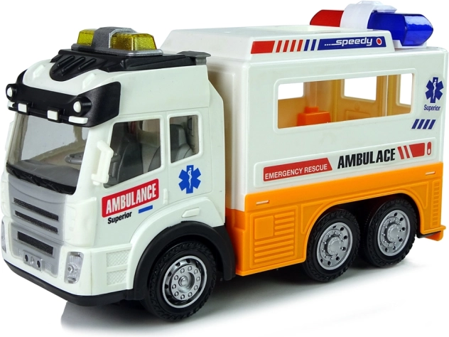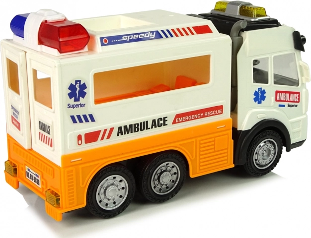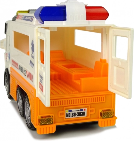 L'ambulanza auto a batteria con effetti di luce e suono conquisterà tutti i ragazzi che amano i veicoli. Le porte posteriori apribili svelano un interno dettagliato con un lettino e spazio per attrezzature mediche. Il giocattolo è realizzato in un bel colore bianco con elementi arancioni e scritte tipiche dell'ambulanza.