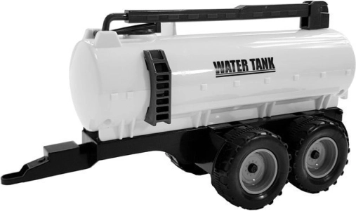 Rimorchio cisterna bianco con ruote robuste per una guida fluida. Perfetto per scenari realistici di irrigazione in fattoria.