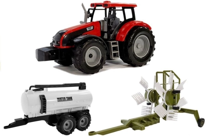 - Set in 3 pezzi: trattore, ranghinatore rotante, cisterna d’acqua