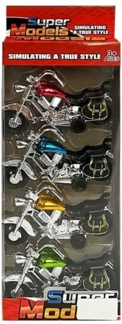 Questo set include quattro modelli di motociclette colorati nelle tonalità rosa, blu, oro e verde. Ogni motocicletta è realizzata con materiale resistente e dotata di un meccanismo a retrocarica funzionante: basta tirare la moto all’indietro e rilasciare per farla muovere in avanti. Grazie al design dettagliato, questi modelli catturano l’attenzione dei bambini e garantiscono un divertimento duraturo.