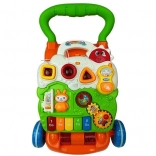 Supportate i primi passi indipendenti del vostro bambino in modo sicuro e divertente. Il girello dai colori vivaci ha una solida maniglia, una base stabile e ruote con fasce in silicone per una guida più fluida e controllata. Il pannello interattivo con pianoforte a 5 tasti, ingranaggi, sportellini apribili e un simpatico coniglietto sviluppa vista, udito e motricità fine.