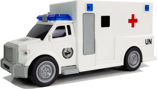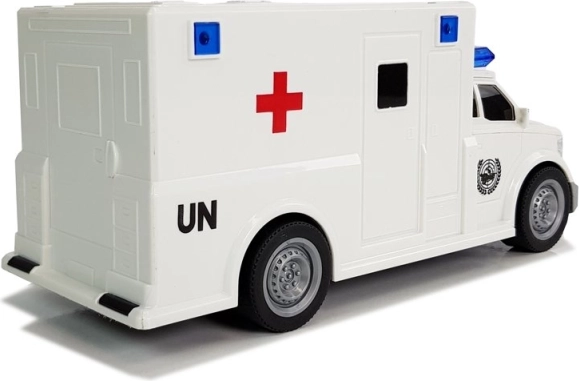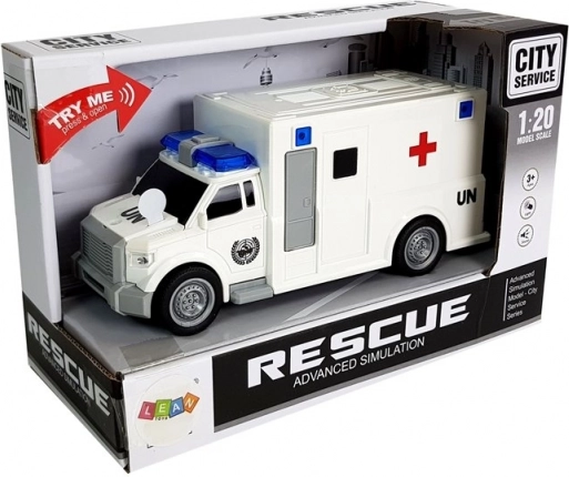 Ambulanza giocattolo realistica in scala 1:20 con effetti luminosi e sonori e trazione a frizione, perfetta per ogni piccolo soccorritore. Dispone di ruote in gomma, è leggera e resistente e, grazie alle dimensioni compatte, è facile da manovrare. Include le batterie e vanta la certificazione CE secondo la norma EN 71.