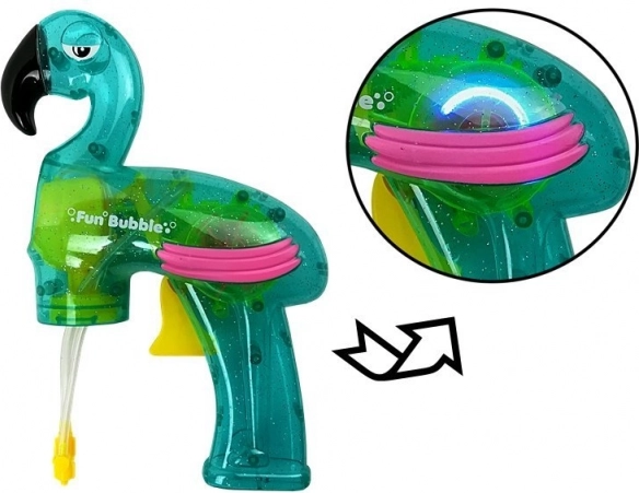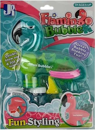 Questa pistola per bolle combina un design unico del fenicottero con una struttura intelligente che consente la rapida creazione di bolle. È facile da maneggiare, anche per i bambini piccoli, grazie alle istruzioni illustrate sul retro della confezione.