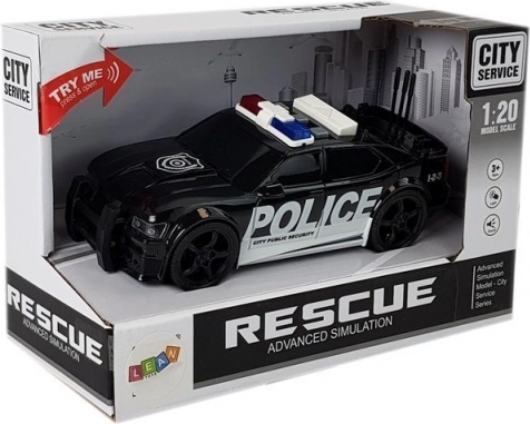 Elegante auto della polizia in classico colore nero con scritte ben visibili, per un’esperienza di gioco autentica. I finestrini anteriori e laterali oscurati aggiungono un tocco di mistero e sottolineano l’aspetto sportivo. Grazie alla scala 1:20, i dettagli caratteristici sono riprodotti fedelmente, aumentando il realismo durante il gioco.