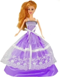 Questa bambola di stile, con capelli lunghi e folti e un trucco delicato, sembra una vera principessa. Indossa una lunga gonna da ballo viola con pizzo bianco, che ne esalta l’eleganza. I bambini trascorreranno ore di divertimento inventando combinazioni di moda e storie.