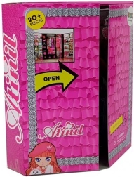 La scatola apribile con grafica dell’armadio conserva ordinatamente la bambola e tutti gli accessori. Oltre 20 pezzi nel set.