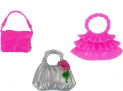 Il set include numerosi accessori da combinare liberamente: 3 borse, 2 paia di décolleté, collana, orecchini lunghi e un ciondolo a forma di cuore. La scatola apribile in stile guardaroba funge da pratico contenitore per la bambola e gli accessori.
