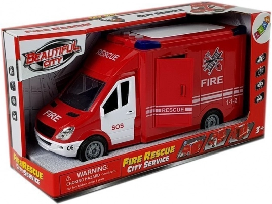 Interni ed esterni sono lavorati con precisione, incluse le porte posteriori e laterali apribili per un facile accesso all’equipaggiamento durante “l’intervento”. La struttura in plastica resistente e la certificazione CE garantiscono un gioco sicuro. Il giocattolo è adatto ai bambini da 3 anni ed è confezionato in una scatola accattivante, perfetta come regalo.