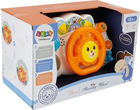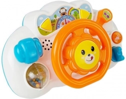 Divertente volante interattivo per i più piccoli in colore arancione che porta un mondo di luci, suoni e musica. Grazie al corpo mobile, alla leva del cambio, allo specchietto e ai pulsanti con effetti, sviluppa la motricità fine, la percezione sensoriale e la coordinazione mano–occhio. Ideale a casa e in auto, sicuro per bambini da 18 mesi.