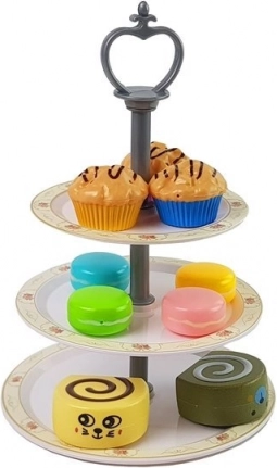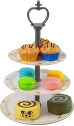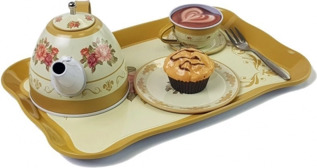 Questo splendido set da tè in colore bianco crema con motivo rosa è ideale per i bambini che amano immedesimarsi nei ruoli degli adulti. Il set da tè favorisce lo sviluppo della fantasia, del pensiero autonomo e della manualità durante il gioco, garantendo non solo divertimento ma anche un valore educativo. La confezione include in totale 39 pezzi: tazze, piatti, piattini da dessert, teiera con coperchio, vassoio, alzata a piani per torte, vari dolci come ciambelle, pasticcini, macaron, nonché cucchiaini, paletta per torta e forchettine.