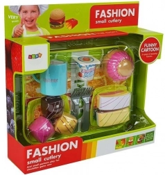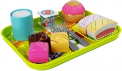 Il set include vassoio, piattini, forchettine, vasetto di yogurt, vari pezzi di torta, tazzina e una fantastica ciambellina. Giocare con questo set offre infinite possibilità per un divertimento senza fine.