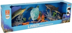 Il set è composto da 10 pezzi che includono coralli, aragosta, granchio, squalo martello, razza, pesce sega, tartaruga e altro. Tre animali marini più grandi hanno parti mobili (tartaruga, due pesci). Il tuo bambino potrà così muovere le loro pinne, la testa e la coda. Inizierà così la sua avventura nuotando nelle profondità dell’oceano.