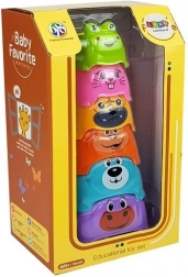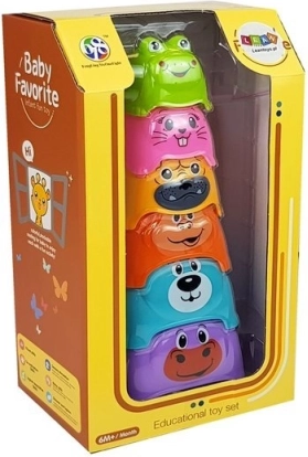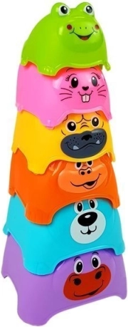 La piramide colorata è un giocattolo che supporta splendidamente lo sviluppo del vostro bambino. Contiene cubetti di vari colori che sono stampati con animali. Al vertice della piramide c'è il cubetto più piccolo a forma di rana. I cubetti sono realizzati con materiale sicuro e non tossico, che è robusto e durevole.