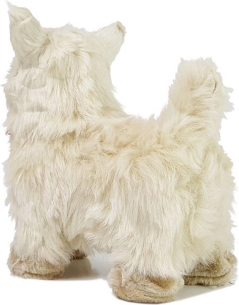 Questo cagnolino interattivo ricorda fedelmente un vero Chihuahua – ha una morbida pelliccia color crema, grandi occhi scuri ed un elegante fiocco rosso. Reagisce alle carezze e ai tocchi: abbaia, muove la testa e la coda e, premendo sul fianco, avanza con una melodia allegra. È morbidissimo, sicuro e pronto a diventare il migliore amico del tuo bambino.
