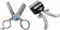 Il phon con tamburo colorato rotante e il regolacapelli con suono di taglio donano al gioco la vera atmosfera di un salone di parrucchiere e BARBER SHOP.
