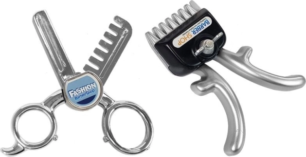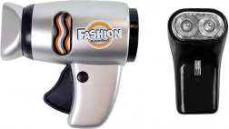 Premendo l’impugnatura, il phon mette in moto il tamburo colorato all’interno, mentre il regolacapelli, azionando il pulsante laterale, emette un autentico suono di taglio. Il set include tutto: dal pettine, allo specchietto e forbici di sicurezza, fino al trimmer, al rasoio giocattolo e ai flaconi per la “cosmetica”.