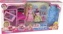 Questo set di camera da letto per bambole, curato nei dettagli, trasforma ogni cameretta in un regno rosa. I bambini ameranno il comodo letto con coperta e cuscino morbidi, il capiente armadio per i vestitini e la toeletta con specchio per i rituali quotidiani di bellezza.