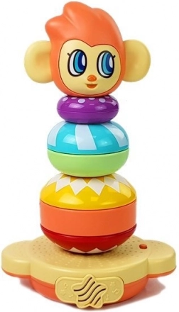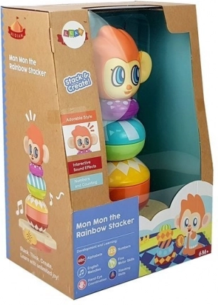 La simpatica scimmietta trasforma l’apprendimento in divertimento! Questa piramide interattiva impilabile con suoni aiuta i bambini dai 6 mesi a sviluppare la motricità fine, la coordinazione occhio‑mano e il riconoscimento di colori e forme. Inserendo gli anelli, il giocattolo riproduce i numeri in inglese e, una volta completata la torre, premia il bambino con applausi ed esclamazioni di gioia.