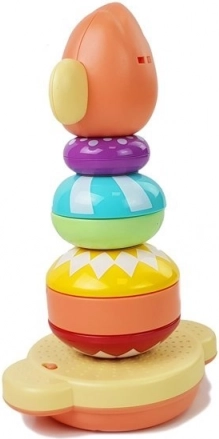 La piramide educativa con tema scimmietta offre anelli colorati di varie dimensioni che i bambini impilano su una base stabile. Ogni pezzo inserito correttamente attiva i numeri in inglese, collegando in modo naturale il gioco all’apprendimento. La torre completata viene premiata con allegri applausi, che rafforzano motivazione e gioia per il successo.