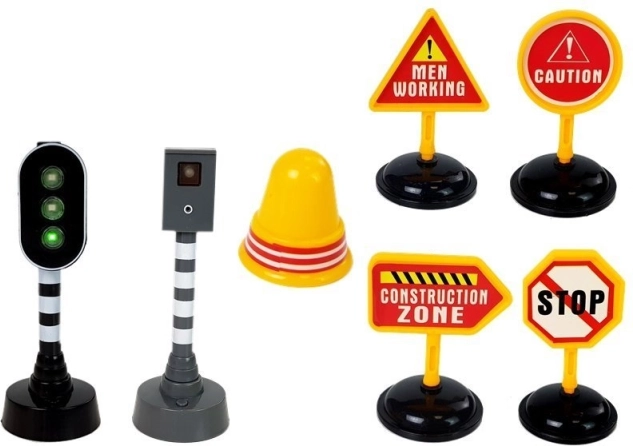 I semafori, i segnali e i conetti aiutano i bambini a comprendere meglio le regole del traffico stradale e l'organizzazione del cantiere. Un divertimento che insegna anche la sicurezza stradale.