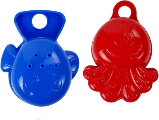 I bicchieri di plastica a forma di animali marini contengono dei fori attraverso i quali i bambini possono osservare le varie correnti d'acqua. Due di essi sono trasparenti, il che permette di osservare il flusso dell'acqua.