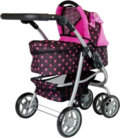 Il passeggino per bambole combina gioco e apprendimento, favorendo lo sviluppo dei bambini in comportamenti empatici e responsabili. Elegante design nero con pois rosa ricorda i veri passeggini e incoraggia il gioco creativo. La struttura in robusti tubi di alluminio e giunti in plastica garantisce durata e guida stabile.