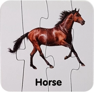 Scoprite un modo intelligente per avvicinare i bambini all’inglese e al mondo degli animali. Ogni coppia di puzzle mostra un animale e il suo nome in inglese (ad es. Lion, Giraffe, Elephant), ampliando in modo naturale il vocabolario. Grazie al sistema autocorrettivo, i bambini riconoscono da soli gli abbinamenti corretti.