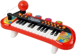 Scelta ideale per bambini e bambine che vogliono organizzare il loro primo concerto a casa. La tastiera nel design rosso‑nero con motivi colorati favorisce creatività, percezione uditiva e senso del ritmo. Grazie al microfono incluso, il bambino può cantare e suonare contemporaneamente; l’ingresso USB/MP3 permette di riprodurre i brani preferiti – perfetto per il karaoke domestico.