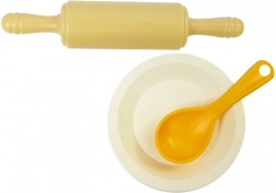 Il set include mattarello, cucchiaio, spatola, coltello da servizio e ciotola – tutto il necessario per un gioco realistico in cucina.