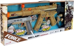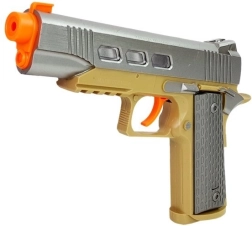 Divertente set militare per piccoli appassionati, include due pistole (grande e piccola/“revolver”), cuffie con microfono per la comunicazione e un fischietto. La pistola grande emette suoni realistici di spari e ha effetti luminosi, mentre la pistola più piccola riproduce singoli colpi e il suono di ricarica. Il tutto in plastica di qualità, ideale per gioco, carnevale o feste in costume.