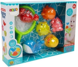 - animaletti in gomma: anatra, granchio, polpo, rete, balena, medusa e pesci spinosi