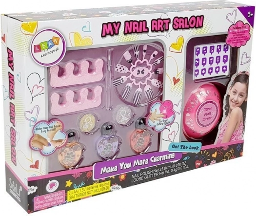 Questo set per manicure è un ottimo modo per intrattenere le ragazze lasciandole sperimentare in sicurezza con cosmetici adatti ai bambini. Accessori come l'asciugacapelli per unghie, smalti dai colori vivaci, adesivi e naturalmente glitter e altre decorazioni, aiutano a creare uno stile unico.