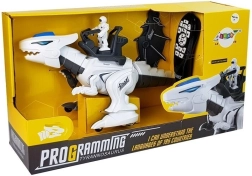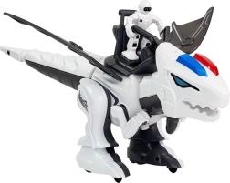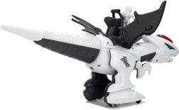 Il robot è realizzato in plastica resistente nella combinazione di colori bianco e nero con dettagli rossi e blu. Il design include parti mobili, come ali e gambe, che consentono al dinosauro movimenti animati. Il tutto è completato da una figurina di cavaliere che “guida” il dinosauro.
