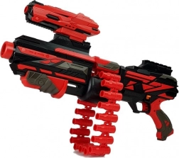 Fucile rosso-nero futuristico che offre un divertimento sicuro per bambini dai 6 anni in su. Include dardi in foam per sfide di lunga durata e sviluppa le capacità motorie.