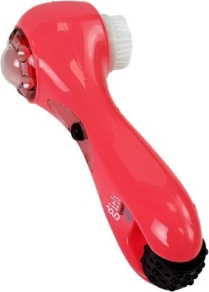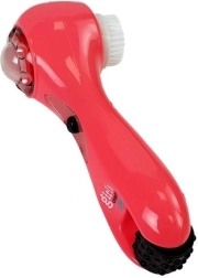 Massaggiatore manuale rosso con testa a spazzola e testine per massaggi per la cura personale.
