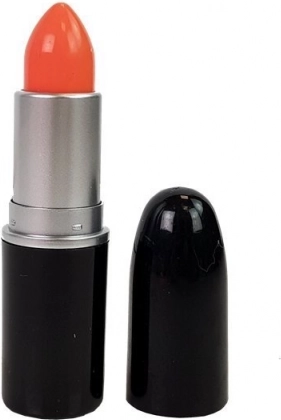 Rossetto splendidamente confezionato in una sfumatura corallo in custodia nera con striscia argentata.
