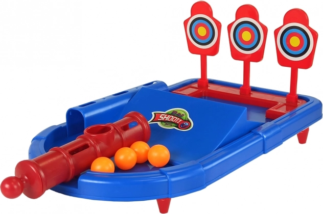 - base di gioco, 6 palline in plastica, carte segnapunti, porta, canestro da basket, birilli, lanciatore, bersagli
