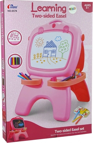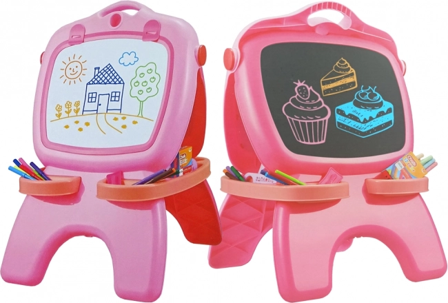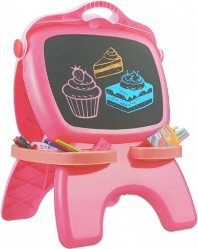 Scoprite la lavagna magnetica e a gesso bifacciale, che sostiene la creatività e l'apprendimento. Il lato bianco è per i pennarelli cancellabili a secco, quello nero per il gesso. Inclusi 12 pennarelli e 12 gessetti, sagome di forme e lettere, pennarello luminoso, pratico cassetto per accessori e gancio per la carta. Dimensioni compatte 64×44×30 cm. Adatto da 3 anni, conforme a EN71 e CE.