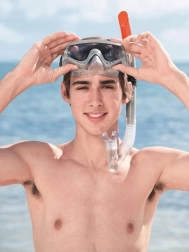 La parte superiore dello snorkel è dotata di tecnologia a tubo secco che limita l’ingresso dell’acqua con le onde o in caso di immersione accidentale.