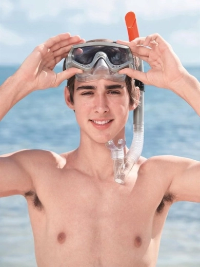 Questo set completo grigio è ideale per lo snorkeling ricreativo al mare o al lago. La maschera con resistente vetro temperato offre una visione limpida sott’acqua, la gonna in silicone si adatta in modo affidabile al viso senza fastidiosi punti di pressione. Lo snorkel con tecnologia “tubo secco” riduce al minimo l’ingresso d’acqua, così puoi goderti una respirazione tranquilla in superficie.