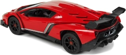 Presentiamo l'auto da corsa R/C Lamborghini Veneno, che incanterà ogni amante dei motori con il suo design aerodinamico e la lavorazione dettagliata. Il modello è realizzato in scala 1:24 e i suoi elementi realistici offrono grande divertimento e allo stesso tempo supportano lo sviluppo delle abilità motorie nei bambini.
