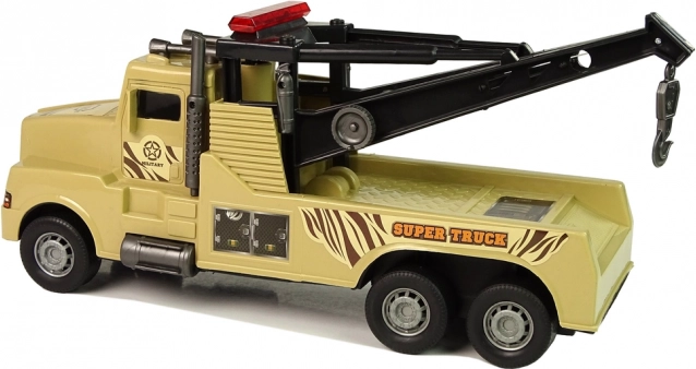 Questo carro attrezzi “Super Truck”, curato nei dettagli, è ideale per scenari d’azione nel cantiere dei bambini o in caso di “incidenti stradali”. La gru posteriore con cavo estensibile e gancio si controlla con una pratica manovella laterale, così il bambino può facilmente agganciare e spostare un’altra macchinina sul “campo di battaglia” o nel parcheggio.