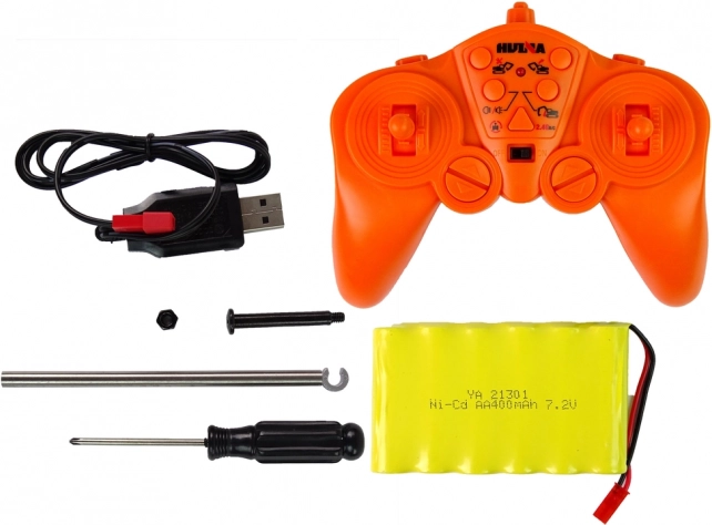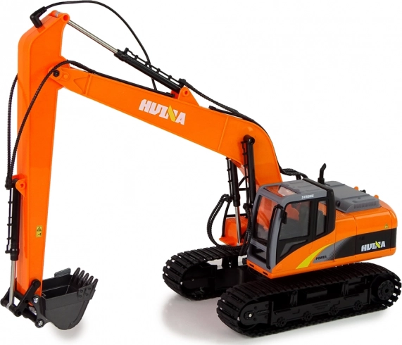 Costruisci il tuo cantiere ovunque! Questo escavatore cingolato HUINA, curato nei dettagli, riproduce fedelmente il mezzo reale: robusto corpo in plastica, benna in alluminio resistente per caricare e scaricare e cingoli in gomma per una marcia stabile su superfici diverse. L'illuminazione a LED e i suoni del motore aumentano il realismo del gioco.