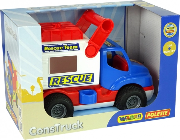 Il veicolo è dotato di ruote in gomma con battistrada antiscivolo per una marcia fluida, ha il portellone posteriore rosso apribile e un vano superiore per i piccoli oggetti. Il blocco laterale mantiene stabile la sovrastruttura: una volta sbloccata diventa mobile e si può ribaltare all’indietro con una leva. Gli adesivi a tema “Rescue/Rescue Team” favoriscono il gioco di ruolo.
